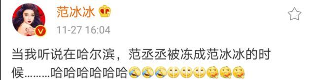 可能是没预料到两人竟相似到这种程度,范冰冰看到后忍不住转发,她笑道:"当我听说在哈尔滨,范丞丞被冻成范冰冰的时候,哈哈哈哈",在文后她还配有"吃瓜"等表情,看起来心情不错。