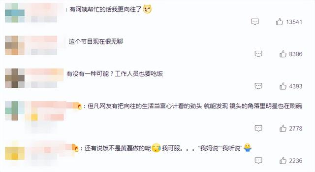 对于这件事情刚发生时,网友们褒贬不一,有网友说道:有阿姨帮忙的话我更向往了!还有人说道:但凡网友有把向往的生活当宫心计看的劲头,就能发现镜头的角落里明星也在刷碗;还有人说道:这个节目现在很无聊。各种声音都有。
