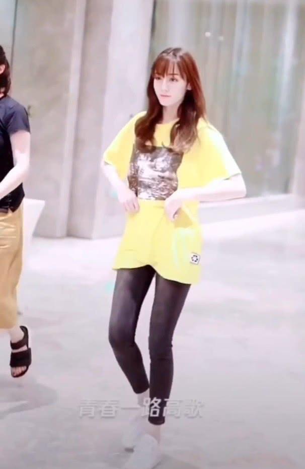 就如这组图中,迪丽热巴穿着一件蛋黄色的短袖搭配一条黑色的紧身皮裤,在别人身上或许会很丑,但在热巴的身上却是那么的清新脱俗了,粉丝们发现热巴在走路的时候,一边走一边用双手放在腰围处。