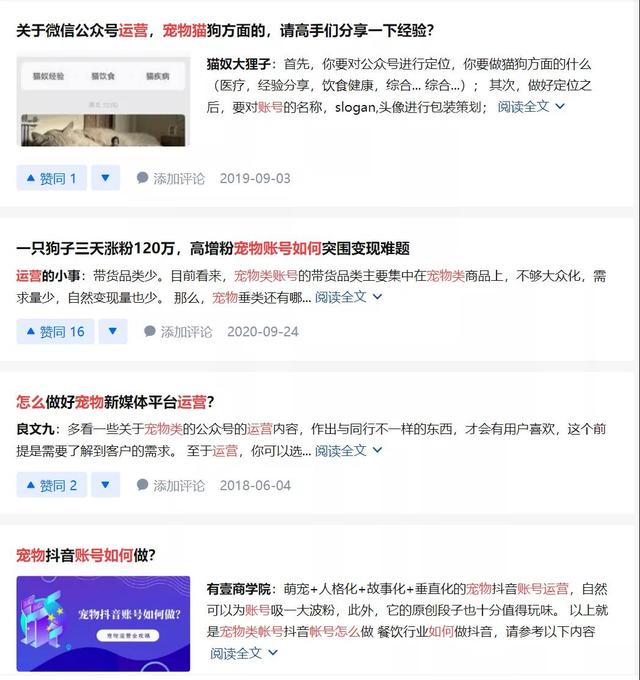 知乎上有许多宠物账号运营的提问。图片来源:知乎