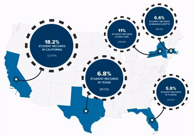 也集中在加州、纽约、德州这三个州。加州历来都是留学热门地区的Top1