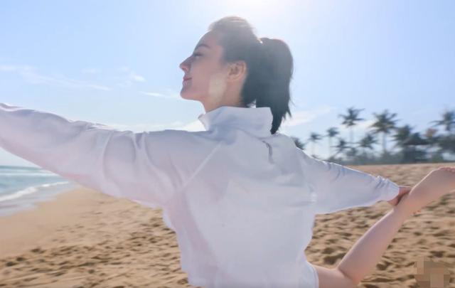 基本是穿着最简单的运动套装,迪丽热巴仍美到令人无法移开目光,盘腿坐在沙滩上时,她看起来美得就像是一幅画。