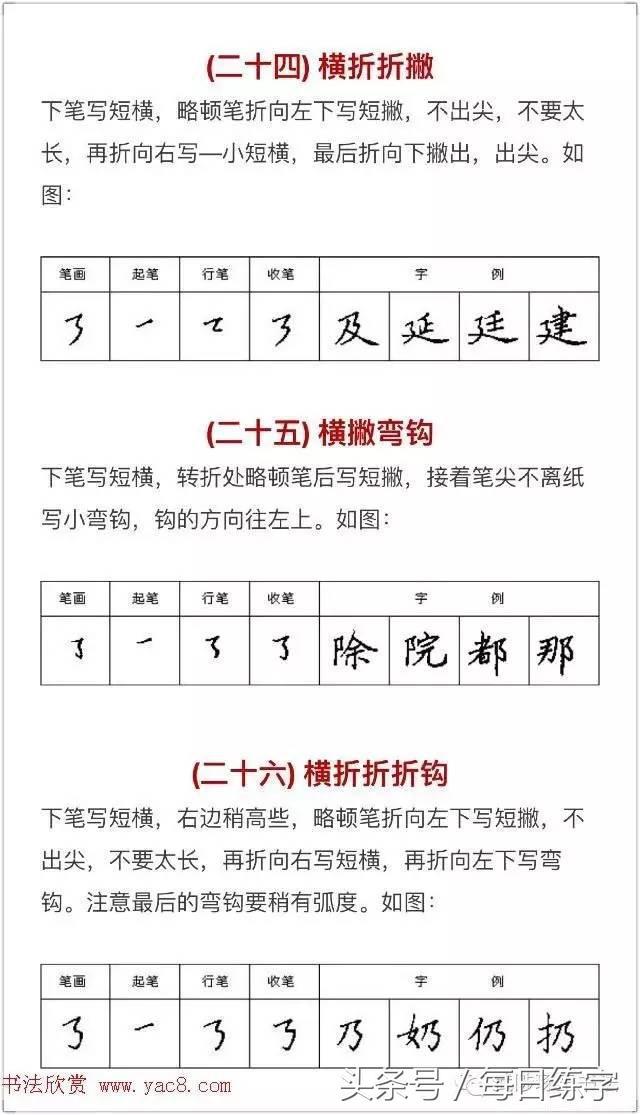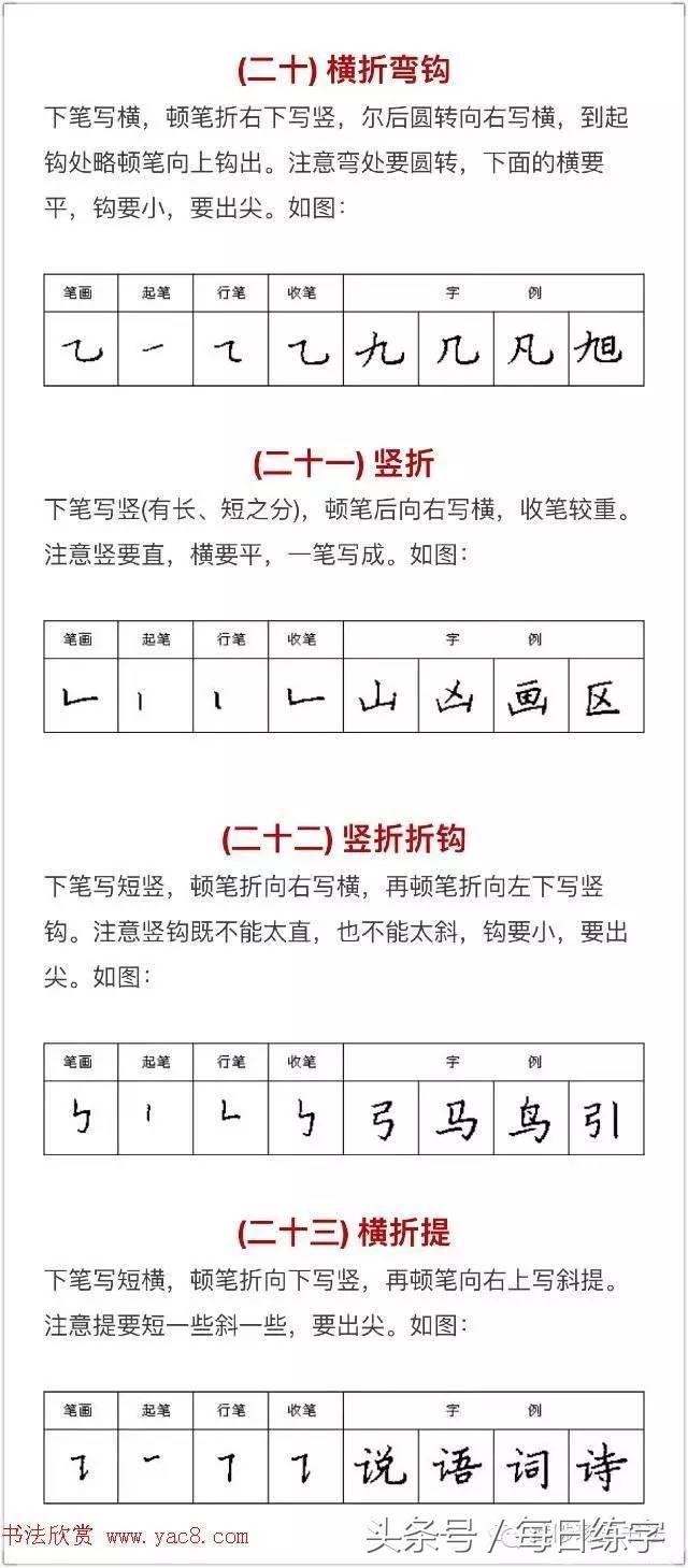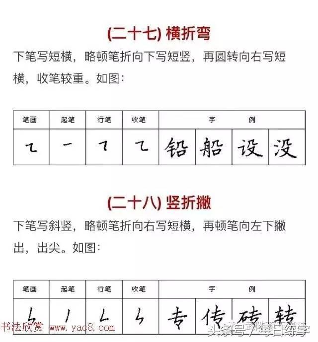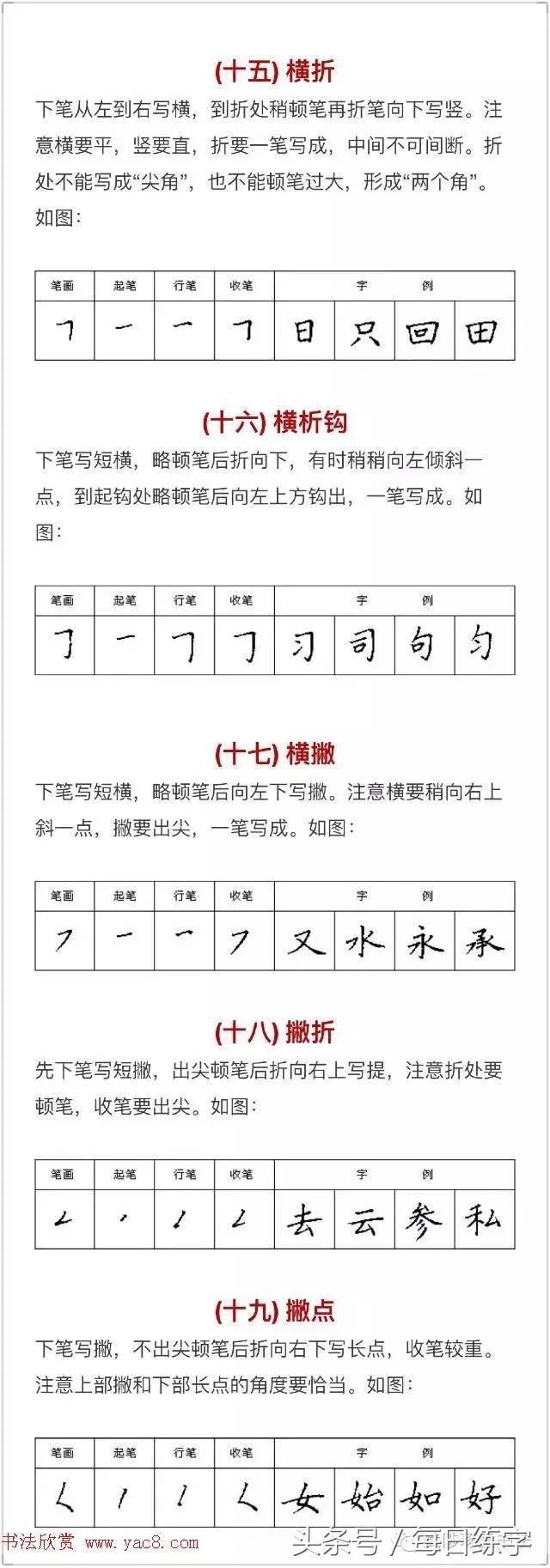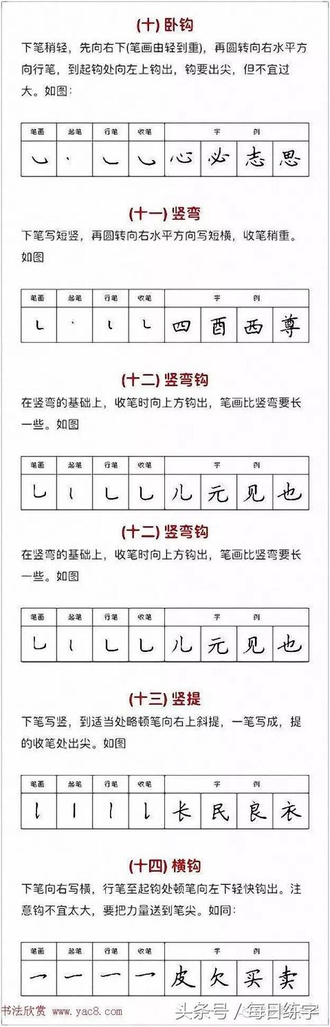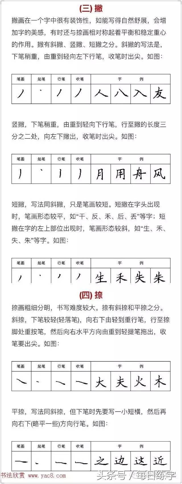 一般笔画分为起笔、行笔、收笔三个步骤。
