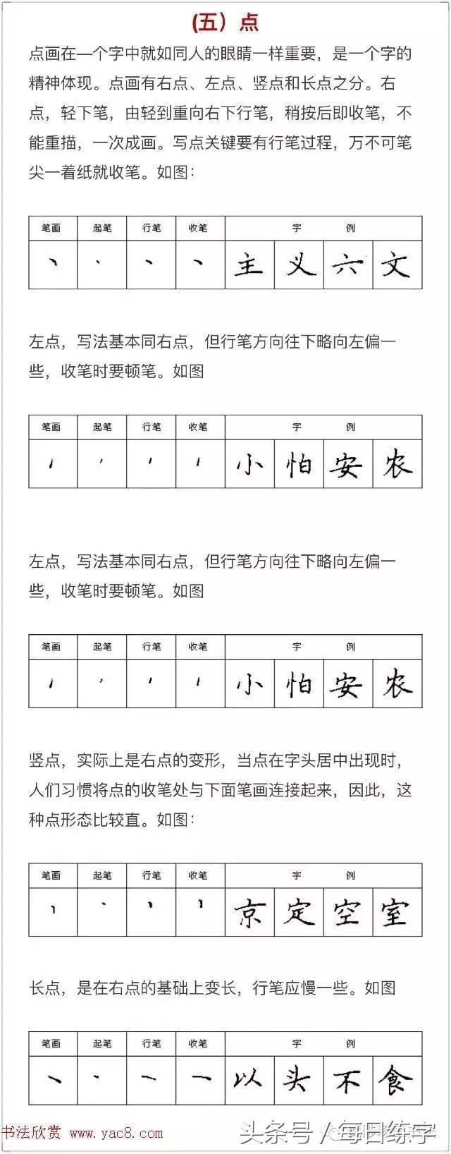 总之要忠实于法帖,形态粗细要准确。一般笔画分为起笔、行笔、收笔三个步骤。