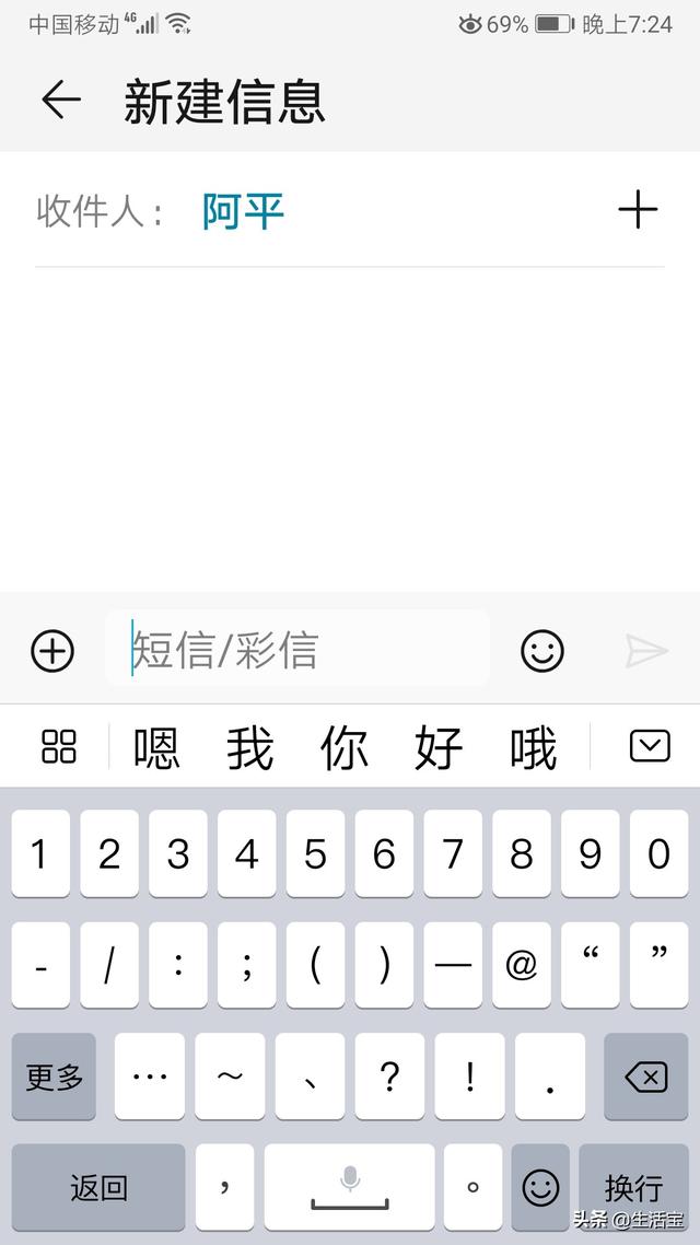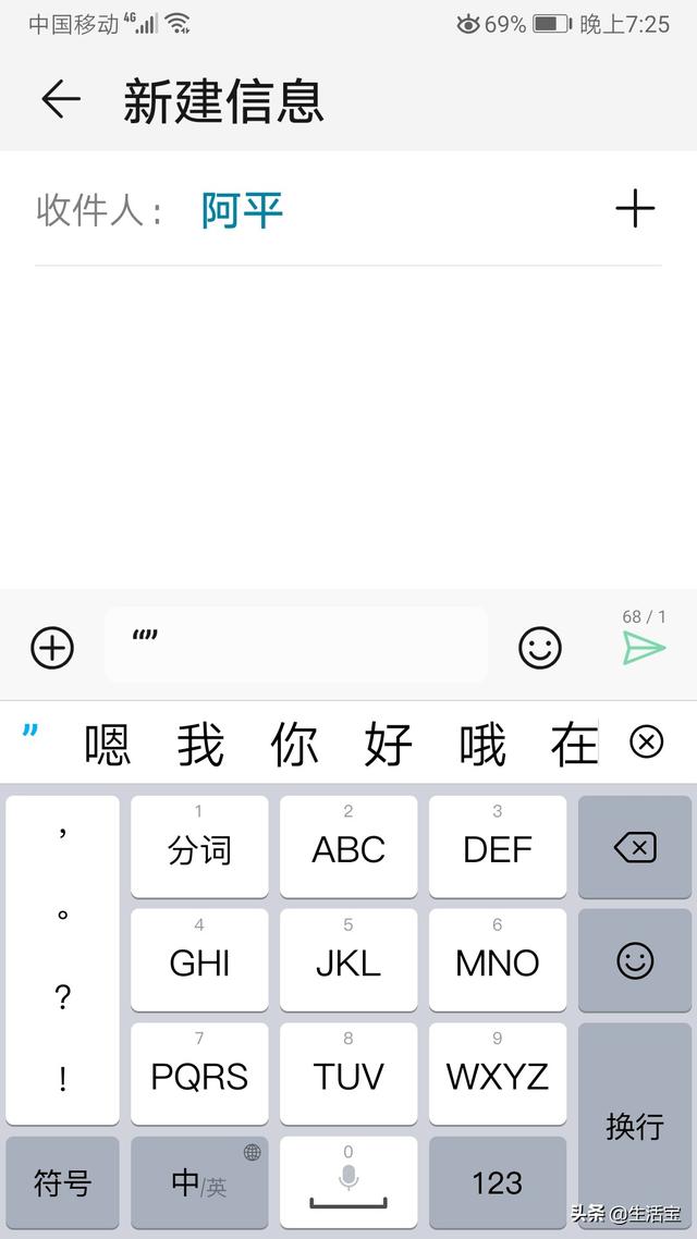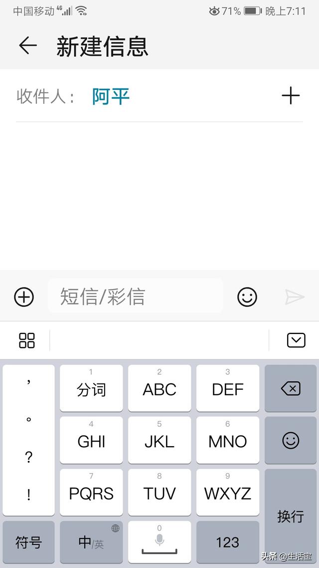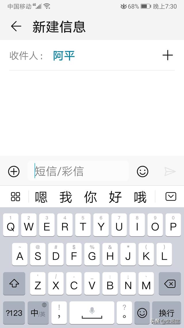实际上,智能手机输入文字的内容是非常丰富的,包括汉字,英文字母,汉语拼音,数字和标点符号等。各种字符混合输入,就要涉及到键盘输入法的切换问题,这些都是由各个切换键完成的,也是我们需要了解的。下面我们以荣耀9手机短信为例介绍中文汉字,字母,符号和数字混合输入的方法,如下图所示。