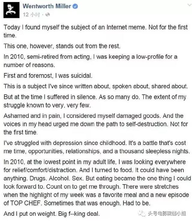 原来,2010年,他的事业陷入低谷期,与他两年前在《越狱》时的春风得意形成巨大反差,这样的处境,让他从小就有抑郁症再度爆发。