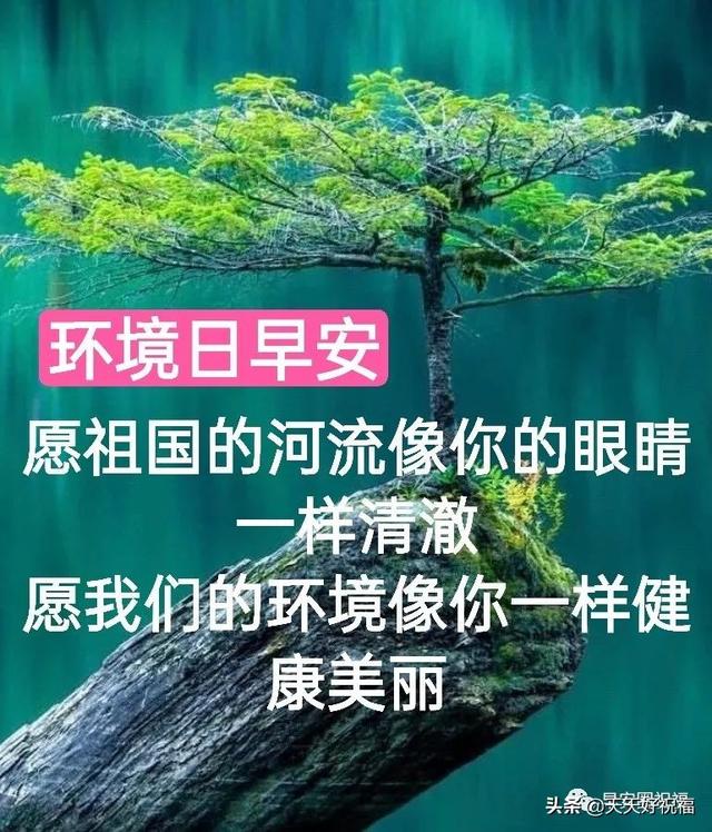 3、空气清新,让你心情舒畅,清水清洁,让你身体健康,美好风景,让你流连忘返,绿色环境,让你生活无限好,世界环境日,祝你幸福永远,笑口常开。