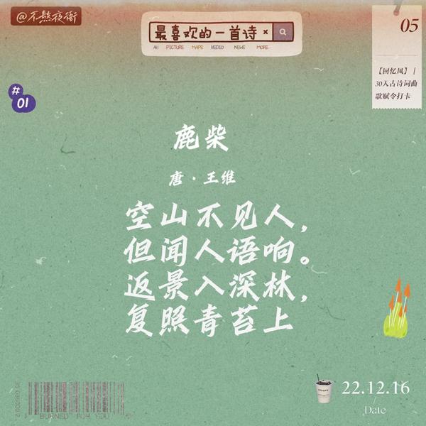 王维《鹿柴》空山不见人,但闻人语响。返影入深林,复照青苔上。鹿柴(zh