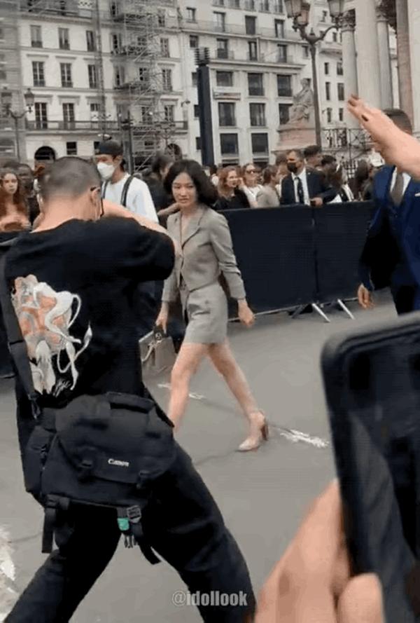 宋慧乔身穿浅黄色小香风套装,她俏脸清丽,明眸善睐,朱唇红润,齐刘海黑色长发散落肩头,她站在墙边很是亭亭玉立,让人看着如浴春风!
