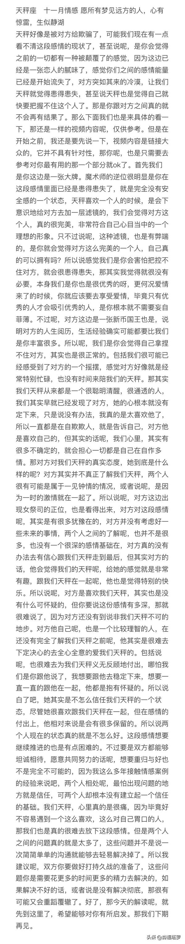天秤恋爱反复推开一个人,直到确定自己是例外、是偏爱、是独爱才安心,但结果一推就全给推没了,然后自己又默默的后悔,其实天秤特执着,特捉摸不透,特没有安全感