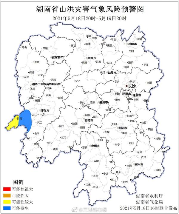 益阳市、岳阳市南部、常德市南部、湘西州南部、怀化市北部累计降雨量将超过10mm。