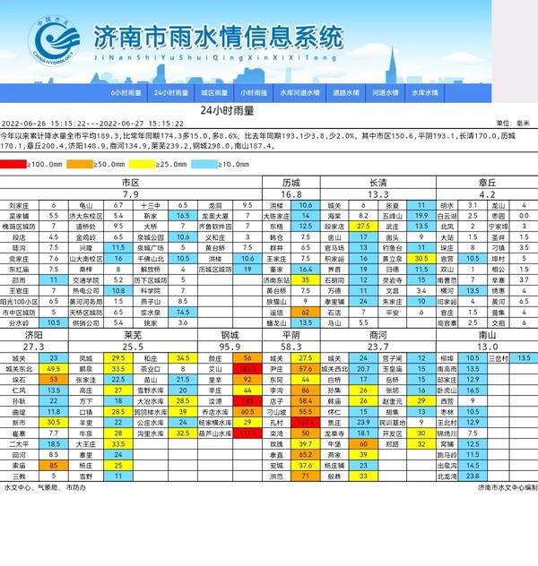 按照划分,24小时内累计降雨量10~25mm是中雨,降雨量25~50mm是大雨,50~100mm是暴雨,超过100mm是大暴雨。