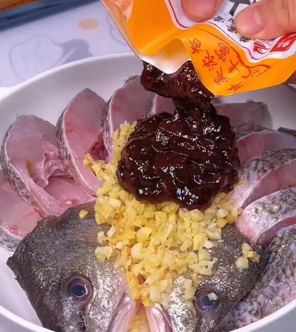 鲈鱼切成小块放进碗里放葱、姜、米酒去腥;放一包豆豉酱放一勺生粉淋一点花生油腌制10分钟左右;铺好粉丝在碗底;铺上腌制好的鱼大火蒸6分钟左右最后撒上葱花
