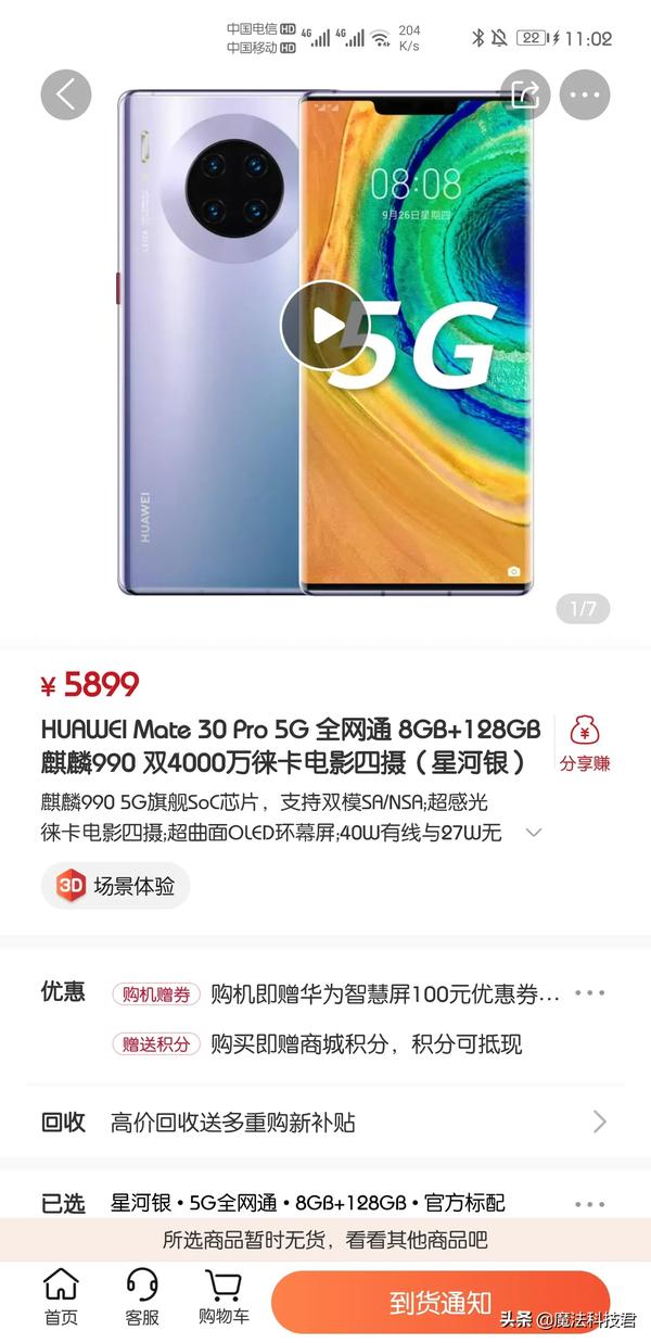 1899收了台8+128G的华为Mate30 Pro,这款手机用了大曲率的曲面屏,而且没有2K,因为上代Mate20 Pro有2K,其次就是大曲率带来的虚拟音量键,使用起来不如实体键方便,屏幕发声也没有物理双扬声器效果好,这也导致很多老花粉不愿入手这代产品。