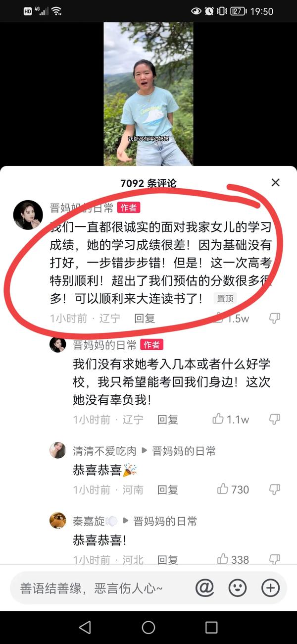 这次晋妈和崔晋哥哥都没有公布优优的具体分数,但是他们果然对她充满了包容和关爱,觉得只要能到大连读大学就不算辜负。