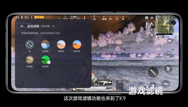 OPPO K9的游戏滤镜功能,玩吃鸡找伏地魔真的准!简单来说就是可以为游戏界面添加滤镜,分别是反转色、漫画风、超高清、老电影等等,而且还可以自定义画面调节,十分人性化。用好了之后真的是个近乎“作弊”的功能~其中一款滤镜名为“夜视镜”,在玩夜间环境下的fps手游时,开启之后敌人能够更加显眼,让玩家不再惧怕“伏地魔”。而OPPO K9超高清滤镜则十分适合日间环境下的fps手游,整个游戏画面都会变得明亮清晰,轻松找到“伏地魔”