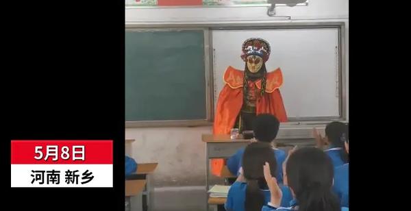 5月8日,河南新乡。一中学老师在课堂上为学生们表演川剧经典——变脸。什么课堂这么有趣?这可不是大家所想的艺术课堂,而是数学课。什么神仙老师,竟然在数学课上表演变脸。这名张老师为了激发学生们的兴趣,可是煞费苦心!备课中,快到轴对称这一章节了,张老师有了用川剧脸谱让孩子们理解轴对称这一概念的。有