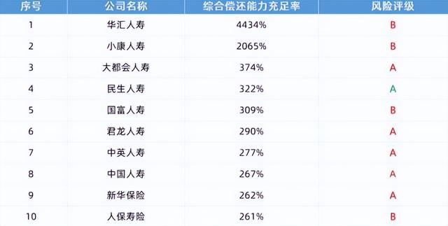 综合偿付能力排名