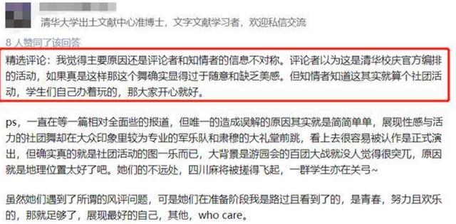 此外,某些人还质疑:“为何在清华校庆如此隆重的场面上,会出现这样“低俗”的舞蹈?”