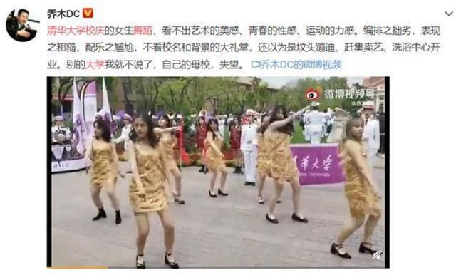 “清华校庆都出现了低俗艳舞,不得不说是清华在退步;”