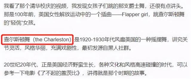 查尔斯顿舞不仅是一种舞蹈,更有着女性解放的意义,从这点来看,这几名女生选择这支舞并没有什么错,反而是彰显出她们的用心。