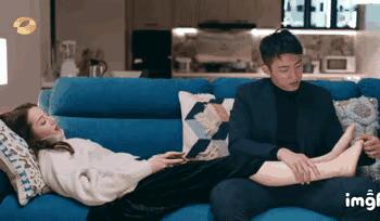 大家看看上面这个图,虽然是做节目,但黄景瑜玩弄热巴的脚趾,就像皇宫里的太监帮贵妃娘娘按摩似的,居然乐在其中。而热巴也是一副享受的样子。
