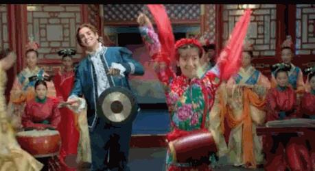 也不知导演是不是故意摆烂,小燕子穿红配绿的俗气造型,表演起腰鼓舞。这土味!这突然发疯!在欣荣格格的基础上还加了腰鼓,难度更上一层了呢!反正,隔壁《甄嬛传》的惊鸿舞,是彻底“输”了!