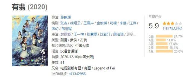 由人气网络小说改编、当红演员赵丽颖和王一博主演的武侠电视剧《有翡》日前开播后,播放量立即在一众网络剧中登顶,相关话题在微博讨论数突破千万,成为年末最受期待的剧集之一。但随着剧集播出,其口碑也明显两极分化:粉丝盛赞男女主演还原《有翡》原著的侠肝义胆,刷起“五星好评”;还有一些观众则批评其制作粗糙、特效“五毛”。抛开粉丝滤镜,《有翡》的剧集质量究竟是否对得起观众的期待?