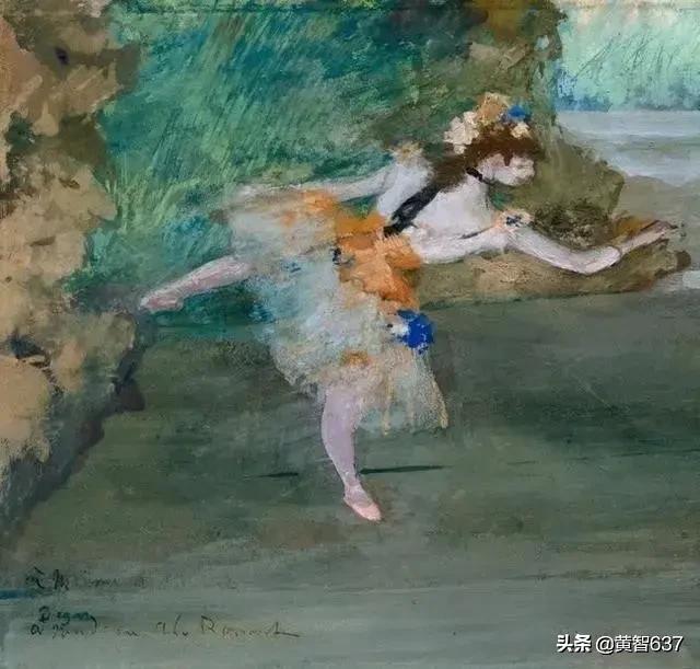 埃德加?德加法国20世纪初期印象派油画大师。埃德加?德加以专事描绘芭蕾舞女演员及其排练演出场景的印象油画风靡西方绘画领域。他的祖父是个画家,德加从小就受到艺术的熏陶,良好的生活环境,使德加在绘画上取得了艺术成就,成为著名的印象派绘画大师。 德加的绘画艺术朝着更加洒脱、朦胧、审美的方向发展,画家在画里重视色彩和动态运用;如他通过芭蕾舞女演员的腿有节奏的动作和她们身穿短裙展示轻盈的舞姿,使人联想起优美节奏的芭蕾舞剧《天鹅湖》。