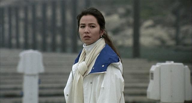 张国荣在影片中很喜欢有层次感的搭配,比如白色牛仔外套叠搭灰色条纹衬衫和白T。
