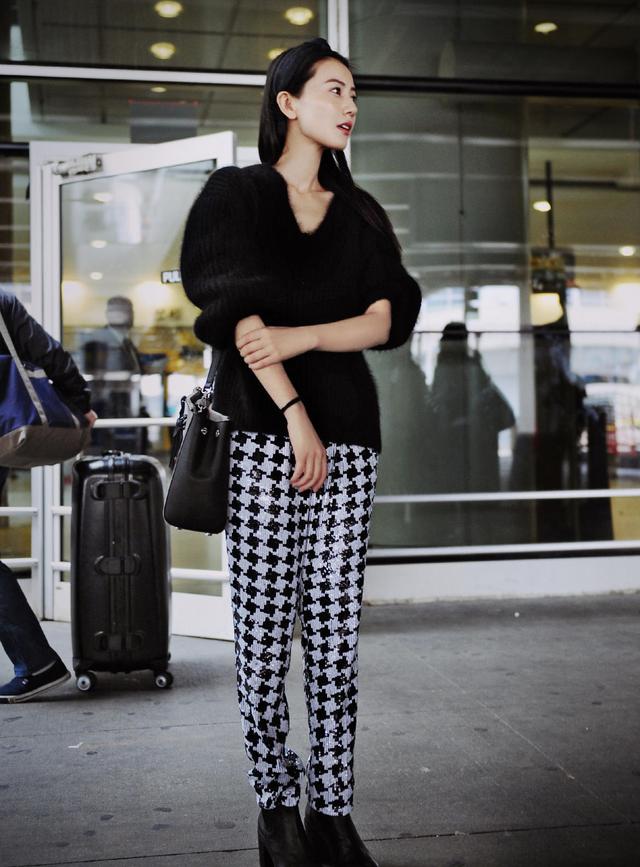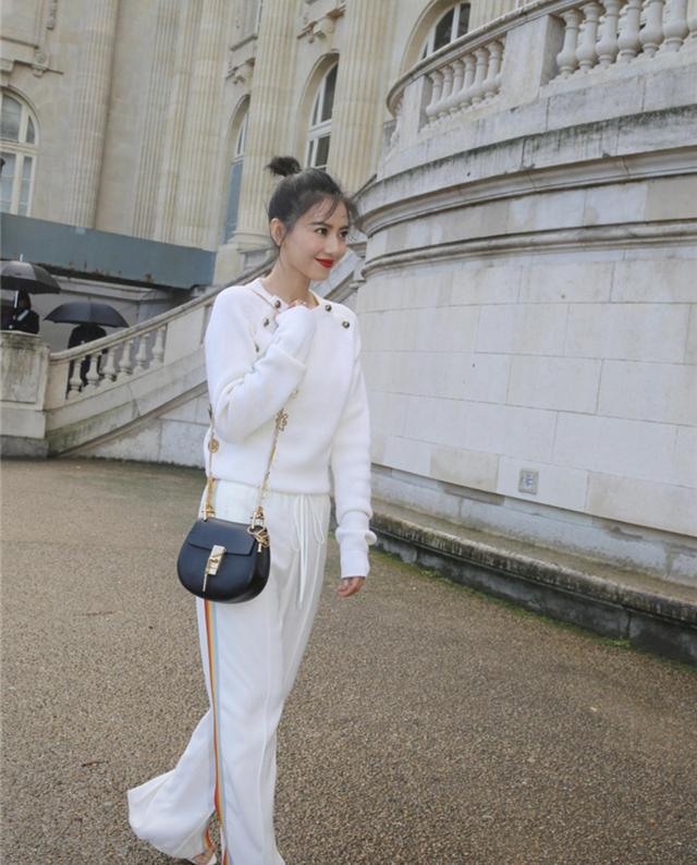 纯白色毛衣看似没有什么新意,但其实仔细搭配能够很好地展现气质。高圆圆挑选的这一款毛衣,在领口处融合了纽扣作为点缀,绝对是造型里的点睛之笔。其实我们在选择这样的纯色毛衣时,也可以搭配上夸张一点的毛衣链,让造型更有光泽。