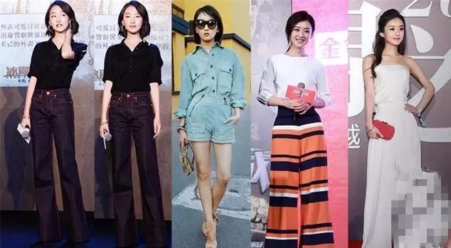 周冬雨纯黑色Polo衫搭配阔腿的复古牛仔裤,帅气风。赵丽颖穿的则是偏职场女性风,十分利落干练。